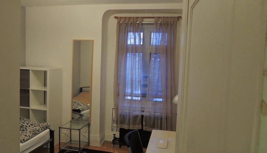 Chambre étudiante dans un élégant appartement 6 ½ - Côte-Des-Neiges, MontréalChambre meublée tout compris: literie, chauffage, électricité et WIFI fournis.Chambre No 1 : 107 pieds carrés, 9 pieds de hauteurChambre No 5 : 83 pieds carrés, 9 pieds de hauteurDans un superbe appartement 6 ½ au 2e étage d’un duplex:• 1450 pieds carrés, 9 pieds de hauteur• deux (2) salles de bain en marbre et granite• cuisine en bois avec réfrigérateur, cuisinière électrique, four à micro-ondes, grille-pain, cuiseur de riz, vaisselle et ustensiles• buanderie avec lave-linge et sèche-linge• balcon avec vue sur l’Oratoire Saint-Joseph du Mont-Royal• chauffage avec radiateurs en fonteSitué sur Avenue Victoria coin Queen Mary250 mètres de la station de métro Snowdon30 mètres de l’arrêt de bus: 51, 124, 166 et 368Près de l’Université de MontréalParfait pour un(e) étudiant(e)Non-fumeur Pas d’animaux Visite sur rendez-vous––Student room in an elegant 6 ½ apartment - Côte-Des-Neiges, MontrealFurnished room all inclusive: bedding, heating, electricity and WIFI provided.Room Nr 1 : 107 pieds carrés, 9 pieds de hauteurRoom Nr 5 : 83 square feet, 9 feet highIn a superb 6 ½ apartment on the 2nd floor of a duplex:• 1450 square feet, 9 feet high• two (2) marble and granite bathrooms• wooden kitchen with refrigerator, electric cooker, microwave oven, toaster, rice cooker, dishes and utensils• laundry room with washing machine and clothes dryer• large terrace with a view of the Saint Joseph’s Oratory of Mount Royal• heating with cast iron radiatorsLocated on Victoria Avenue corner Queen Mary:250 meters from the Snowdon metro station30 meters from the bus stop: 51, 124, 166 and 368Close to Université de MontréalPerfect for a studentNo smoking.No pets.Visit by appointment