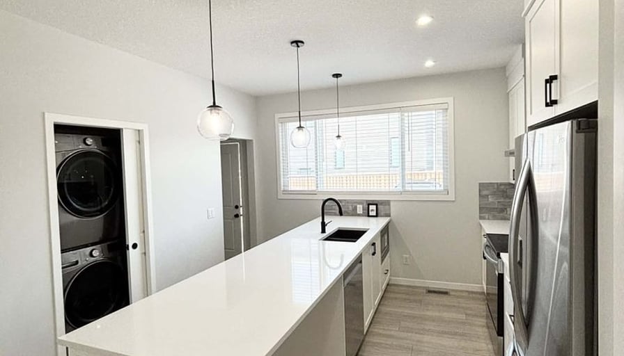 Stunning brand new modern Bungalow home at Lucas place NW. It’s offers spacious main floor living with 2 bedrooms with spacious master’s bathroom,and another full bathroom in main floor, and a bright spacious kitchen with brand new stainless steel appliances and washing machine in main floor also for convenience.Perfect for family,couples,singles looking for quiet and comfortable living space.•Place available immediately.• Unfurnished main floor• Bright open-concept main floor with 9 ft ceilings• Modern kitchen featuring quartz countertops,island with breakfast bar and stainless steel appliances.• Spacious dining and living room area perfect for entertaining.• Own laundry in main floor • Bedrooms with spacious closets• Master’s bedroom with own full bathroom.• Rear (3 spots/2 spots each per unit) and 1 front parking available. Located in the growing, safe and family-friendly community of Livingston NW Calgary.This home is surrounded by playgrounds, parks, walking trails, and natural green spaces.Close to all amenities; Elementary schools,shopping centres, recreational facility (the Livingston Hub) loop.Private Elementary schools: Calgary international AcademyAddress :(1248 Livingstone way NE.) Commute: 5 minutes Drive.Public Elementary Schol: St. Josephine Bakhita School Address: 3 Evans Glen Cl NWCommute: 8 minutes Drive .Lease DetailsLong termRent: $1750Utilities Requirements: (free first month utilities/Not included) 1 month deposit requiredNo petNo smokingContact or DM us for more details and for viewing.