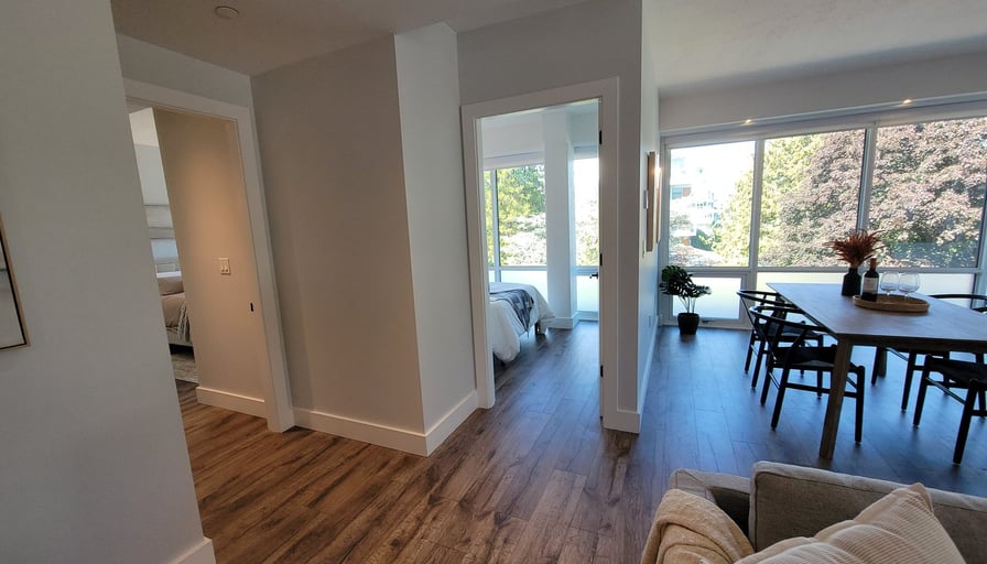 This building features only 11 concrete units and only one neighbour on this floor. The unit features a 544 SQFT patio with a pergola and views of Queen Elizabeth Park. Complete with air conditioning, oven/induction range, refrigerator and towel warmers. All of this, just blocks away from Oakridge Centre, Queen Elizabeth Park, and Hillcrest Community Center. Nearby schools include Van Horne, Eric Hamber and Vancouver College.The unit comes with 2 parking spots and available EV charging to be installed