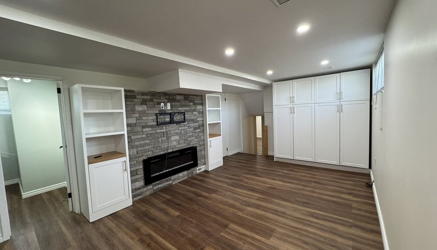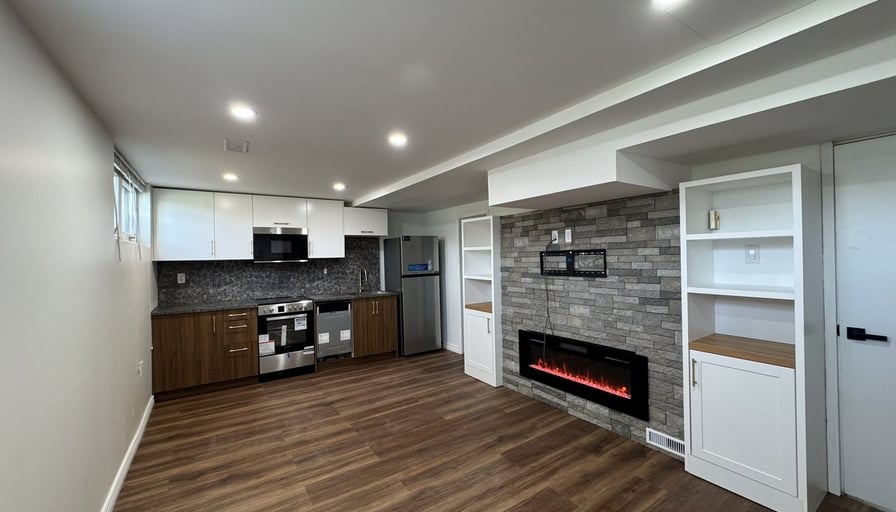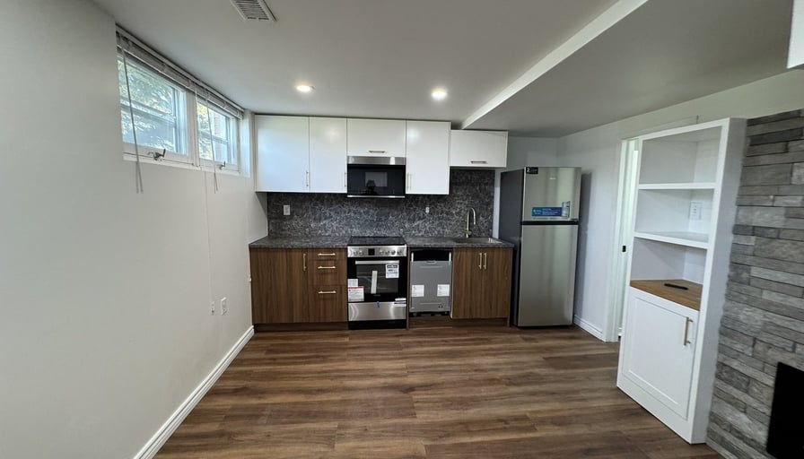 2 bedrooms, 1 bathroom (shower, toilet, sink)Brand new kitchen cabinets and appliances with extra storageCozy electric fireplaceExclusive use of in-unit stackable laundry in the mechanical room (not shared)Access to parking with interlockingTenant responsible for snow removal of the interlocking areaTenant responsible for 35% of gas, hydro, and water/wastewater bills.