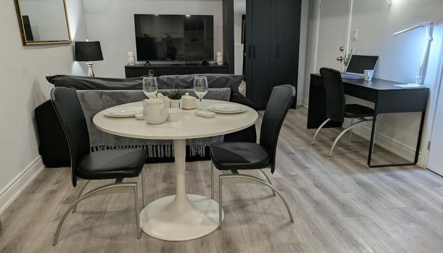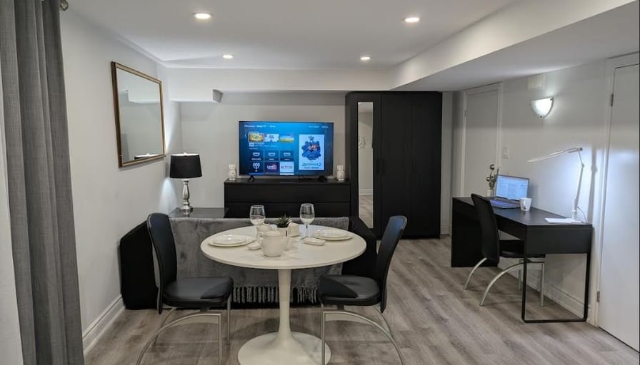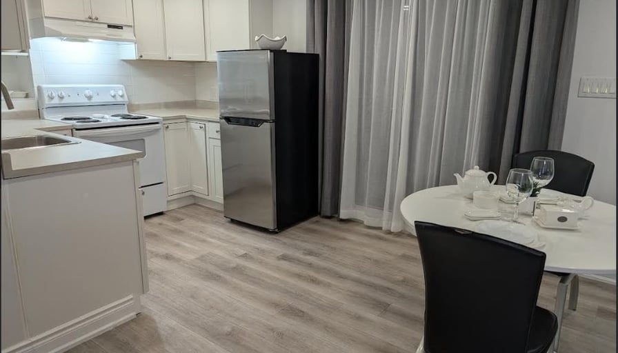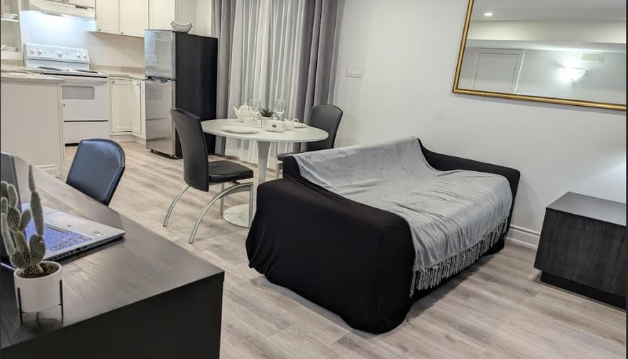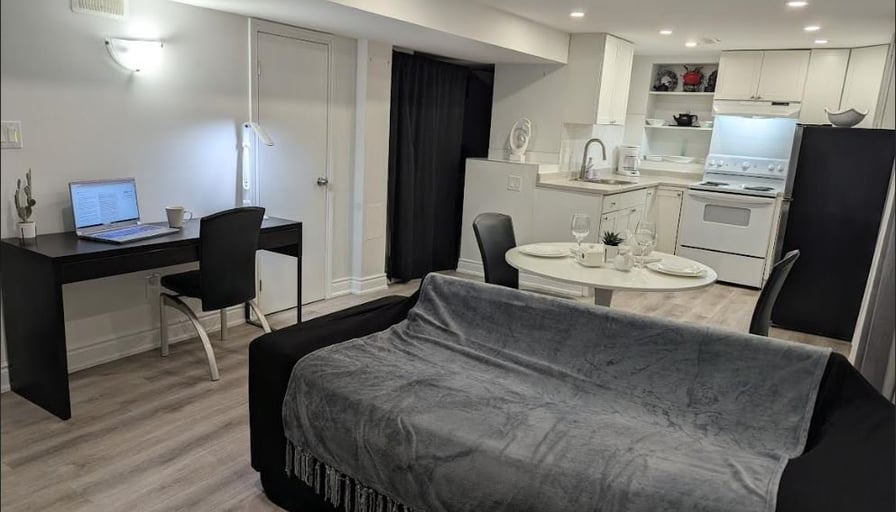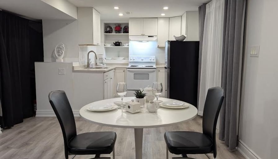 ✨ DECEMBER PROMO: $2050 (Regular $2200)Beautiful, fully furnished private 1-bedroom apartment located in one of North York’s safest and quietest neighbourhoods (Steeles & Dufferin). Perfect for professionals, newcomers, or students seeking comfort, privacy, and a premium living experience. Minimum 28-day stay.🏡 Private Apartment Features:• Fully private unit with separate entrance• Furnished bedroom with Queen bed, dresser, and full closet• Bright living room with a comfy sofa and 57“ Smart TV• Full kitchen: fridge, oven, microwave, coffee maker, kettle, cookware• Dedicated workspace — ideal for remote work• Modern private bathroom• High-speed unlimited Wi-Fi• Heating, air conditioning, and all utilities included• Extremely clean, quiet, and well-maintained🌿 Location & Lifestyle:• Surrounded by ravine parkland, trails, and nature• Exceptionally safe and peaceful residential area• 7 minutes to York University• 7 minutes to Pioneer Village Subway Station• Close to grocery stores, cafés, plazas, and bus routes• 20 minutes to Pearson Airport• 15 minutes to Canada’s Wonderland🚗 Parking:• One parking spot on the driveway included (second spot optional)💰 Rent Details:• DECEMBER PROMO: $2050 (regular $2200)• All utilities, Wi-Fi, heating & AC included• Minimum stay: 28 days• Move-in ready — just bring your suitcase!📞 Contact:For viewing or more information, please call or text:647-878-3445