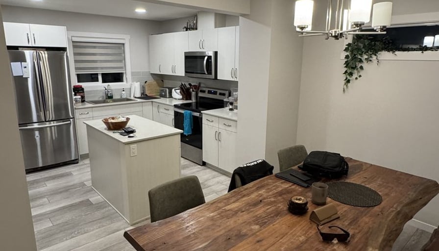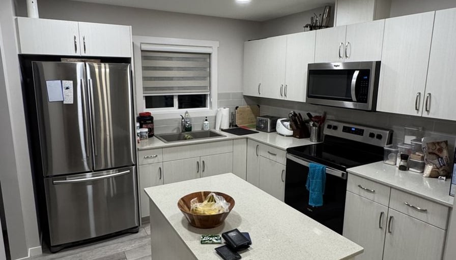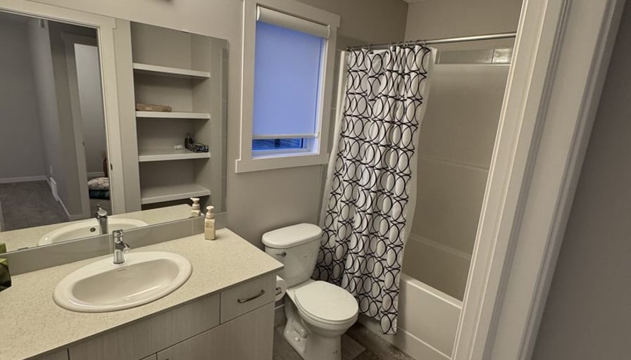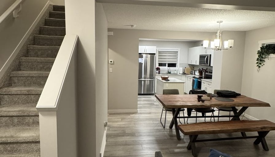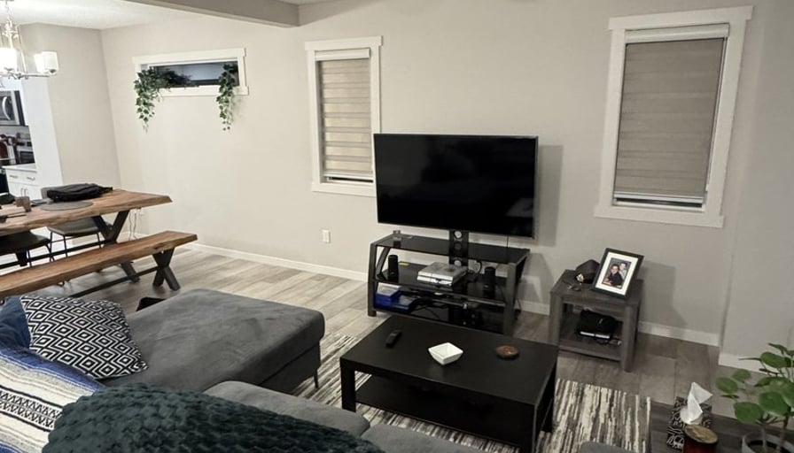 Room for rent: Large spacious master bed room with walk in closet and full ensuite bathroom. Blackout blinds installed for shift workers, or those non early morning risers. Shared living space and kitchen. Kitchen fully stocked. Basement has plenty of room for additional storage. Second fridge in basement for extra food storage. Included: Electricity, Water and Heat included. Wifi Included.A/C installed for summer months.Free parking. Dishwasher Washing machine and Dryer Overall I’m pretty easy going. Ideally looking for someone in the age range of 20-30 years old. Can either be long term or short term tenant, open for discussion. Any further questions, please feel free to reach out.
