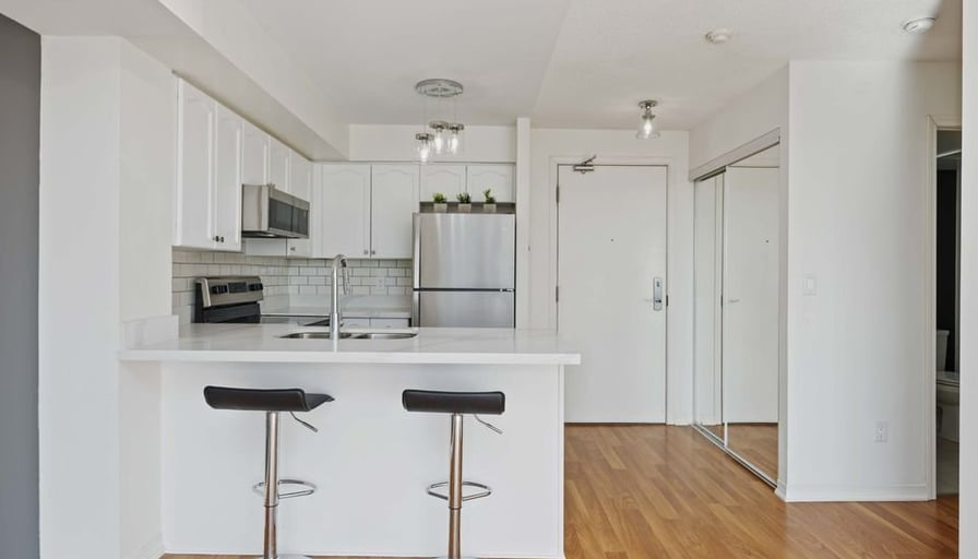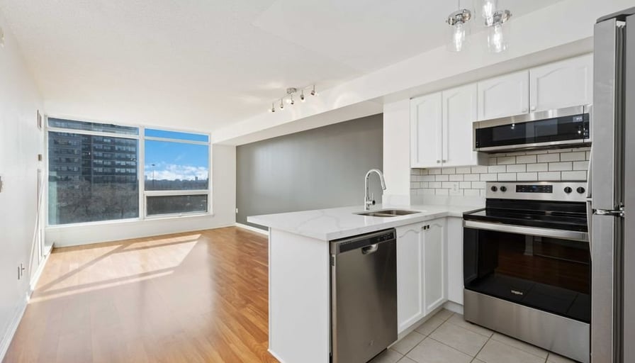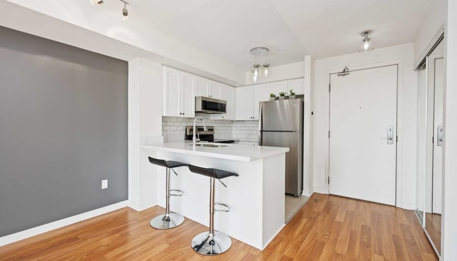 Discover urban tranquility! This fully renovated 1-bed, 550 sqft condo offers seamless open-concept living, a balcony with breathtaking views, and easy access to city life and nature. Perfect for those seeking convenience and serenity combined.