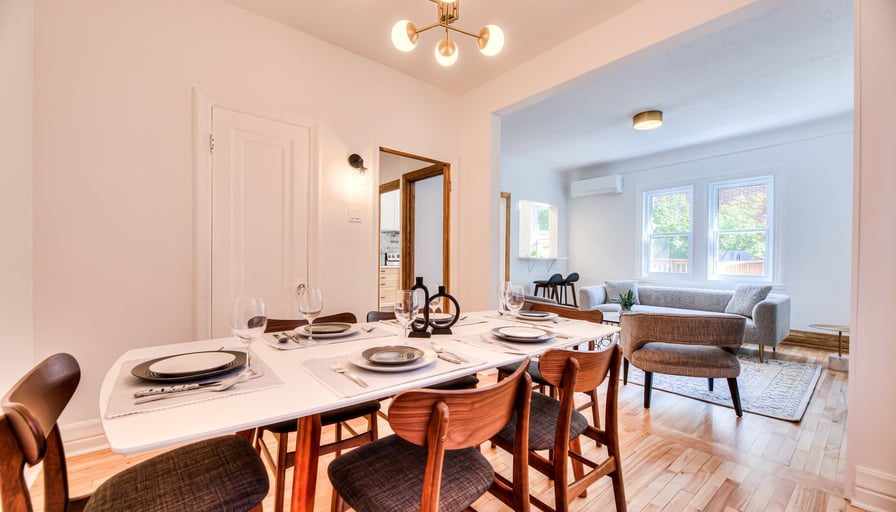 Perfect for relocations, work assignments, or extended Montreal visits! This spacious 3-bedroom, 2-bathroom home spans two levels and features a private terrace, dedicated home office, and pet-friendly policy. Located steps from Snowdon metro with grocery stores and restaurants within walking distance.High-speed WiFi (100+ Mbps)Dedicated workspace with desk and office chairPrivate terrace with outdoor furniture and BBQSmart TVIn-unit washer/dryerFull kitchen with dishwasher, coffee maker, all cooking essentials