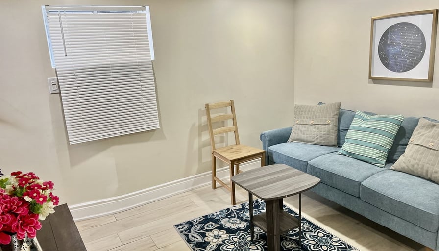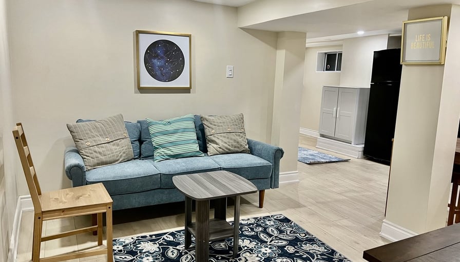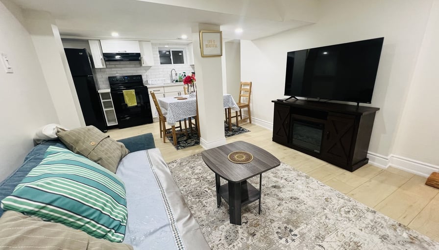 A Cozy Furnished Basement Bedroom with a private washroom for rent one bedroom for $950 all utilities included and wifi, shared kitchen and living with another tenant who occupied the second bedroom, This unit has a separate entrance and a separate Laundry W/ A Nice Kitchen W/ Two Bedrooms and + 2 Full Baths W/Separate Laundry W/ 7 Bright Windows all utilities ( heat, water, electricity and WiFi) [Kitchen + Living Room +Laundry] Steps to the bus stop, it’s a great location. It is very convenient for your day-to-day life! It is close to major Highway QEW, 406 Access, 7 minutes drive to Brock University, 3 minutes away from the plaza in which there is a grocery store, banks, pharmacy, and other fast-food, separate laundry, stove, fridge, Washer, Dryer, TV and Coffee machine. -The first spacious bedroom has a luxurious Full bed, closet, and One Full washroom. -The second bedroom comes complete with a Full bed, with Three drawers & closet - The Dining Area comes with a table and four chairs _The living area has a beautiful sofa with a Cheerful Fireplace & TV