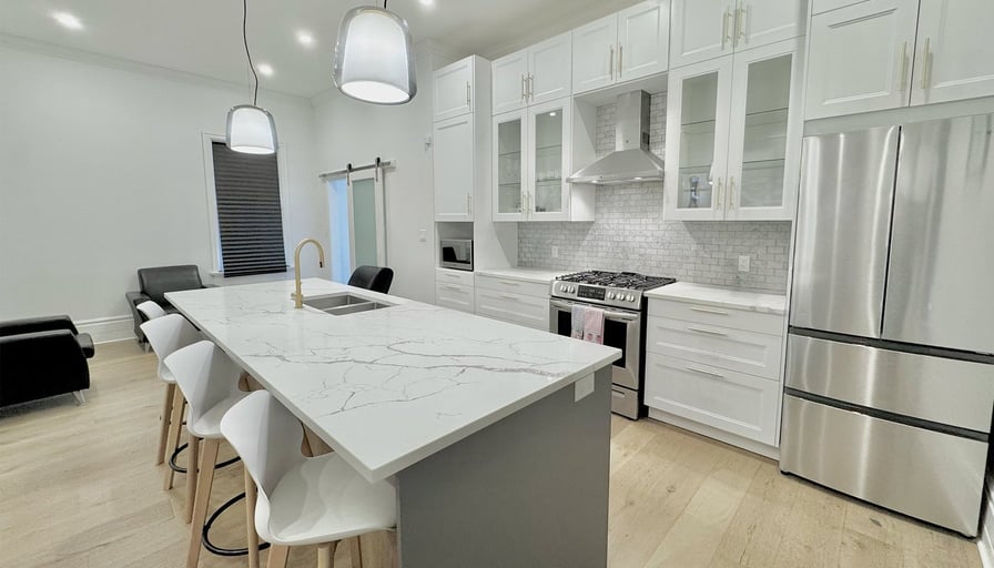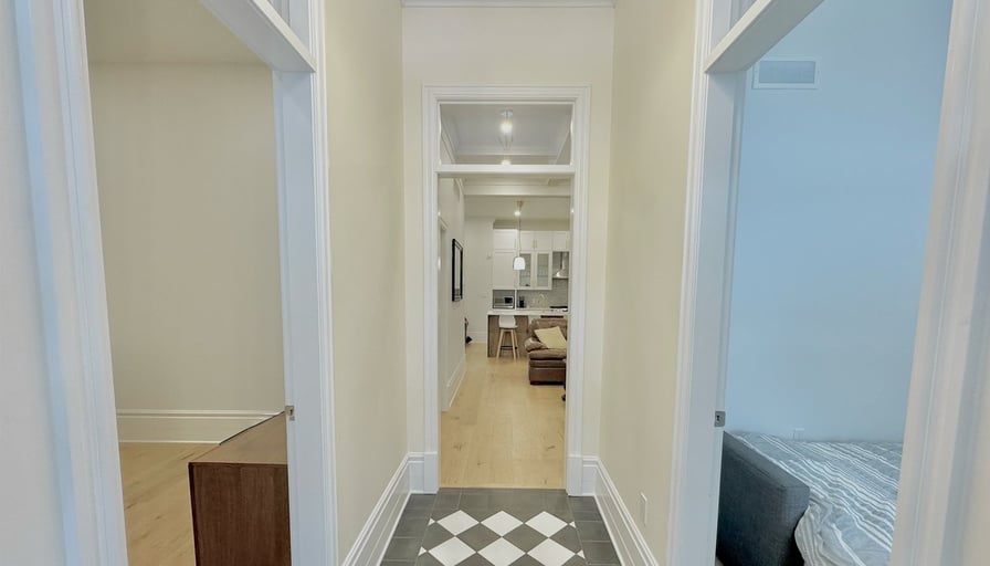 16 Horn St is a luxury executive rental available furnished or unfurnished. This home features luxury finishes throughout, including 12+ ft ceilings, a massive kitchen island with breakfast bar, gas stove, tall cabinetry, modern flooring, and fresh paint. The primary bedroom includes a king-size bed and a spacious walk-in closet, with a generously sized second bedroom as well. The living room offers tray ceilings and pot lights for a bright, upscale feel. You’ll also enjoy a full 4-piece bathroom, an additional 2-piece bathroom, in-suite laundry, parking for two, a small private backyard, a back porch, and an unfinished basement for storage. The listed price is for the unfurnished option, with a fully furnished option available for +$200/month. Tenant pays utilities. Located close to all amenities, including downtown, grocery stores, public transit, and Springbank Park.