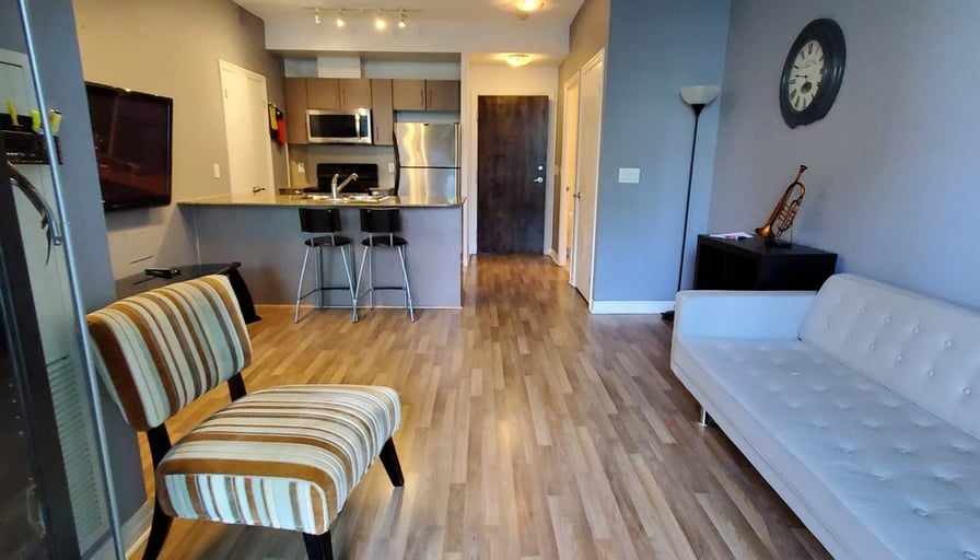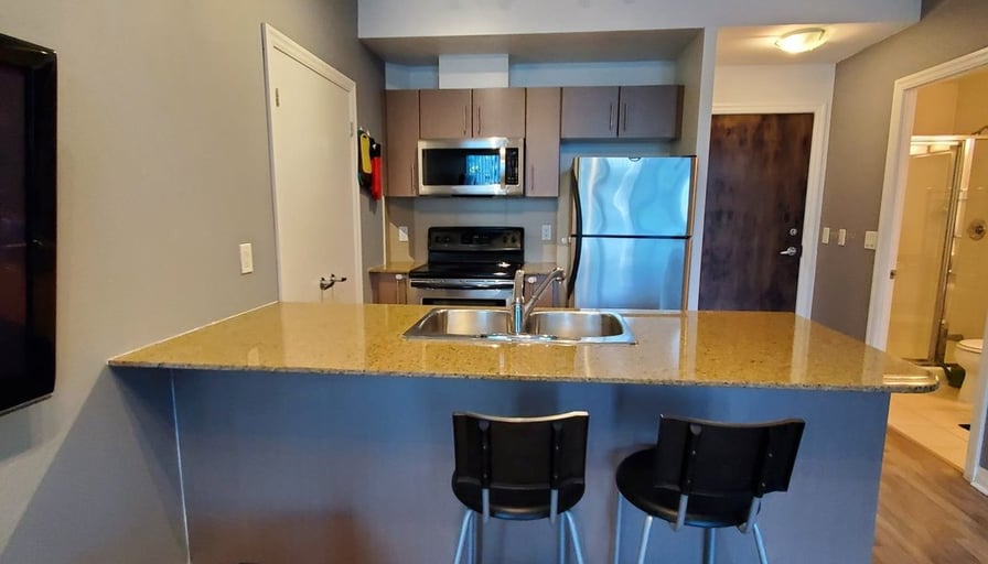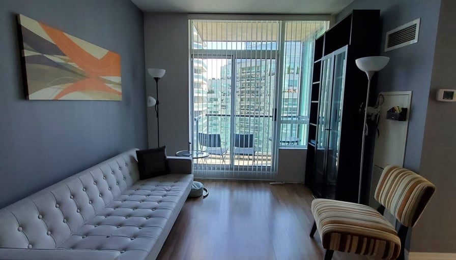 Centre Ice Action ! Pinnacle Centre at Bay, Harbour and Yonge. Tower Two -12 Yonge St. Spacious bright, furnished 2 bedroom. Kitchen with breakfast bar, granite counter, balcony, window coverings. No car? No problem: Conveniently walkable to every amenity: Longos and Loblaws, Scotiabank Arena, Roger’s Centre, restaurants, coffee shops TTC, Union Station, Entertainment District, parks, Financial District, hospitals, University of Toronto. Quick and easy drive to access to Lakeshore and Gardiner Expressway. Incredible Building Amenities: 24 hour concierge, indoor pool, gyms , squash court, work station/ business centre, BBQ, outdoor space, squash court, guest suites, party room, games room. Utilities included except for internet.