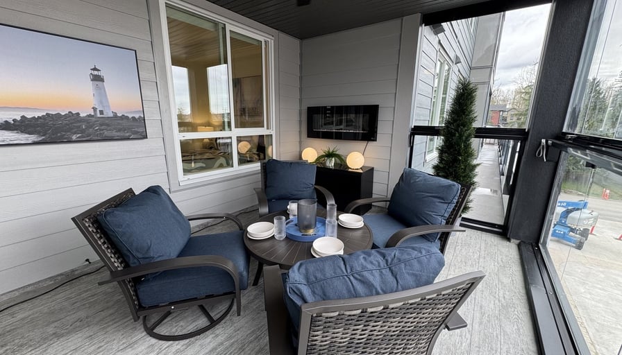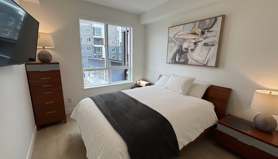 Enjoy living in the BRAND NEW luxury spacious 954 sq ft layout, 2 BD/ 2 Bath, plus one of the largest 143 sq.ft solariums with stunning West-facing views of the park and clubhouse. This condo is fully furnished, including all small and large kitchen appliances, BBQ, a window air conditioner, black out blinds, storage bed, ceiling fans, desk/workspace, fireplace, and so much more etc. This condo is exquisitely decorated with Italian furniture and airs on the side of comfort and ease of living. One parking stall is included in the rent, and a 2nd underground parking stall can be rented for an additional cost, if available. Residents benefit from 35,000 sq ft of shops, unique amenities like games and party rooms, concierge service, a green vertical garden, gathering areas with fire pits, a rooftop patio, playgrounds, and a fully fenced dog park. Don’t miss out on this exceptional urban living experience!We do have additional properties in the lower mainland. Please call for more information.