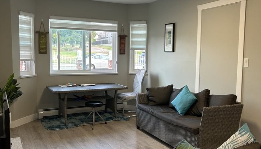 Furnished + Utilities + All Kitchen necessities + Convenient Location + Park + Shopping + Fitness + More NearbyFurnished unit in front of the Park, All-inclusive 2-bedroom and 1 bath unit. Furniture in progress. All-inclusive of utilities, laundry, high-speed internet, furniture, Smart TV, blankets, linen, microwave, blender, kettle, dishes, pots & pans, cutlery, etc. Jan 1st move-in. If needed a few days earlier, it could be accommodated. New furniture for the living room is in progress and arriving Dec. 26th, 2025. Across from the Park. The bus stop is on the other side of the Park. The bus goes directly to the Skytrain in a few minutes. The grocery market is a 1 and 1/2 block away. Nearby to Highgate Mall, Tommy Douglas Library, Edmonds Community Centre, Banks, Restaurants, Schools, Churches, etc. Easy access to highways. Street Parking is available.Smoke-free and pet-free premises.If you have a serious interest, please get in touch with me and share a little about yourself and the terms you are seeking.