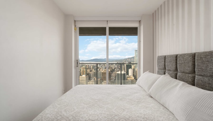 Located in the prestigious Telus Gardens, this exceptional southwest corner suite offers an unrivaled lifestyle of luxury and sophistication. This meticulously designed residence boasts breathtaking panoramic views of English Bay, snow-capped mountains, False Creek, and the dynamic cityscape. With 2 bedrooms, 2 bathrooms, and a flexible living space, this exquisite home features the finest finishes, including air conditioning, Miele appliances, bamboo flooring, and sumptuous wood carpets. Residents are privy to an array of five-star amenities, including an outdoor pool, sauna, 24/7 concierge, fitness center, yoga studio, and a dog park. Immerse yourself in the epitome of urban living and seize this rare opportunity to own a remarkable piece of Vancouver’s skyline.Please note:Rate is until May 31st, 2026. Please inquire for rates after this date.Bed setup: 2 x Queen, plus 2 x twin size air mattresses (linens included for the air mattresses)Free Parking: available on location (underground secure)Furnished units are not available to rent unfurnished.Included: linens, towels, cable TV (basic), Wifi Internet (free), washer/dryer (on suite), full kitchen, and AC (portable or central). NOT included: Toiletries, condiments (salt, pepper, ketchup, etc.), soap, dishwasher detergent, laundry detergent, toilet paper (2 rolls are complimentary upon arrival), and paper towels* 90 Days minimum rental period* Security deposit required* No Smoking* No Pets* References requiredThere is a one time cleaning fee of $375 and a onetime move-in fee of $300.All reservations will be confirmed within 24 hours after bookingMinimum rental age is: 25We do NOT host events/parties/overnights in our suites at the momentAll prices are subject to change without notice prior to booking. We reserve the right to decline a booking.Disclaimer: While every effort has been made to provide current and accurate information presented on the listing, aesthetic features such as furnishings, are subject to change at any time. Please schedule a viewing or request a virtual tour of the unit to see a current representation.The property address is - 777 RICHARDS ST, VANCOUVER, BC V6B 0M6