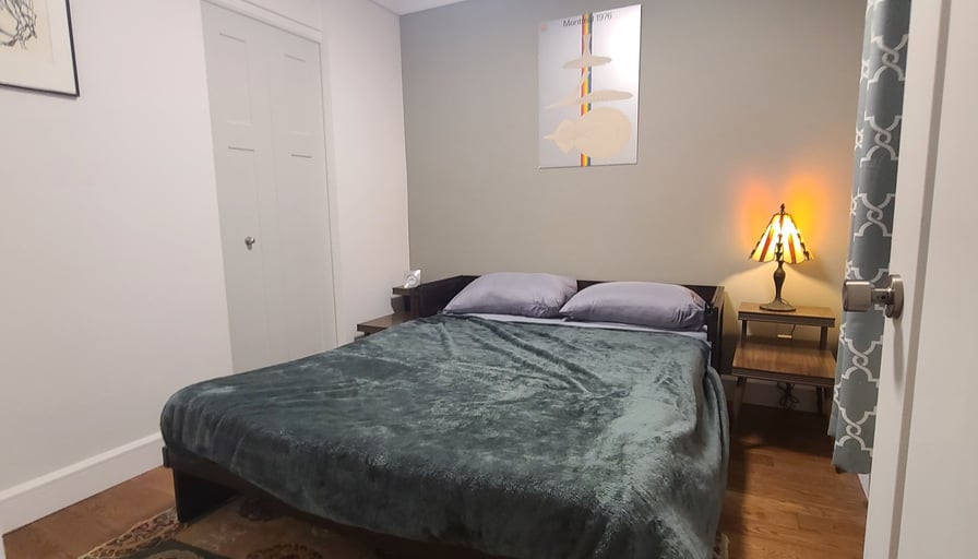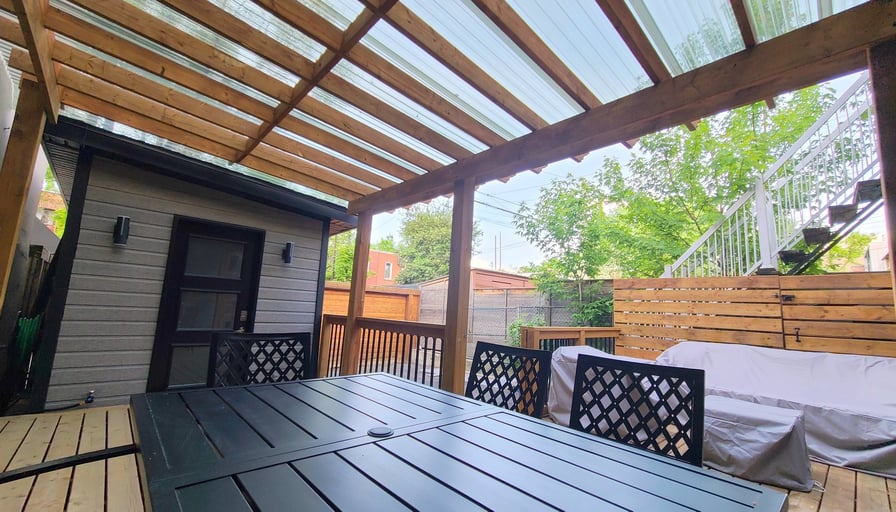 Elegant Furnished Apartment in Classic Montreal Brick BuildingImmerse yourself in the vibrant culture of Montreal from this exquisitely furnished, contemporary apartment. Set within a charming early 1900s brick building, this residence offers the unique character of historic architecture paired with a fully modern interior, completely renovated in 2021 for ultimate comfort and style.Key FeaturesSpacious & Flexible Layout:1,150 sq. ft. encompassing 2 bedrooms, 2 bathrooms, and a dedicated office with an electric standing desk. The primary bedroom boasts an ensuite bath, while the secondary bedroom features a fold-out bed, perfect as a guest room or flex space.Private Full-Floor Suite:Enjoy your own floor with a private entrance, ensuring a true sense of exclusivity.Modern Conveniences:Central heat and A/C, in-unit washer/dryer, large flatscreen TV, and high-quality, tasteful furnishings throughout.Move-In Ready:Equipped with towels, linens, blankets, cookware, dishware, and flatware?simply unpack and feel at home.Outdoor Retreat:Spacious private patio with both a sofa lounge and dining area, ideal for relaxing or entertaining.Ample Storage & Parking:Expansive basement storage and a private parking space directly adjacent to your patio.Utilities Included:All utilities covered, with a $100/month cap on electricity.Location:Nestled in a dynamic Montreal neighborhood, you’ll enjoy easy access to trendy cafés, diverse dining, and cultural attractions. Little Italy and the historic Jean Talon Market are just a short walk away, placing the best of the city at your doorstep.Lease Terms:Minimum 1 month, maximum 6 months.Pricing and availability subject to change.Every detail of this residence is designed to elevate your living experience, offering a harmonious blend of historic charm, modern convenience, and everyday comfort.