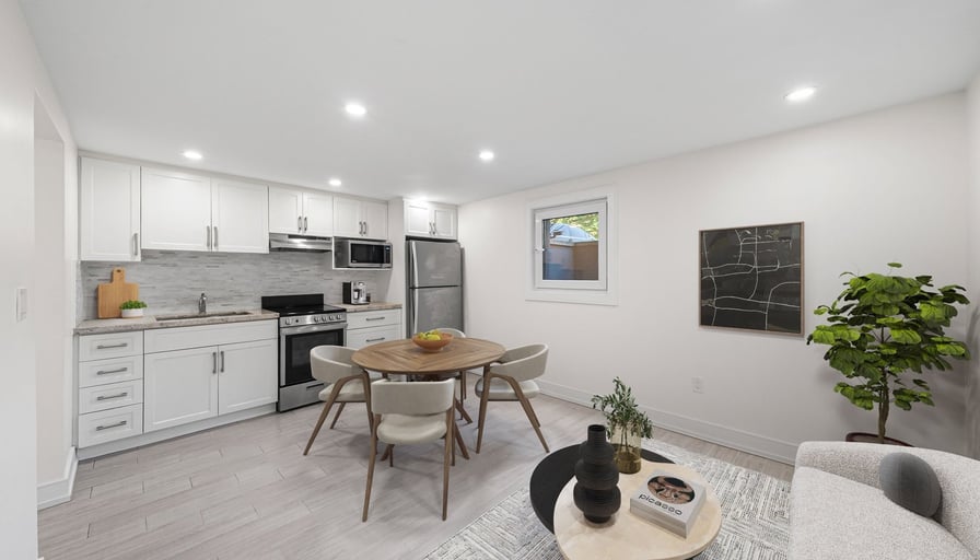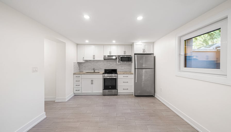 This renovated 2-bed, 1-bath apartment sits on the lower level of a beautifully maintained triplex in Long Branch, offering modern finishes and smart use of space. The open-concept living and kitchen area features a large tilt-and-turn window for natural light, sleek pot lights, granite counters, tile backsplash, and stainless steel appliances. Both bedrooms are well-sized with built-in closet organizers, and the updated 3-piece bathroom includes a modern shower and clean, contemporary finishes. Located on a quiet street steps away from Lake Promenade, enjoy easy access to parks, trails, & retail shops, with the TTC & GO Train nearby for easy commuting. Don’t miss the chance to make this charming lower level unit your new home in the sought-after Long Branch area! Water and heat included, tenant pays hydro. Shared laundry.