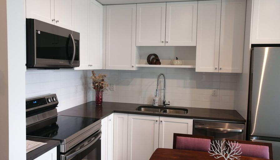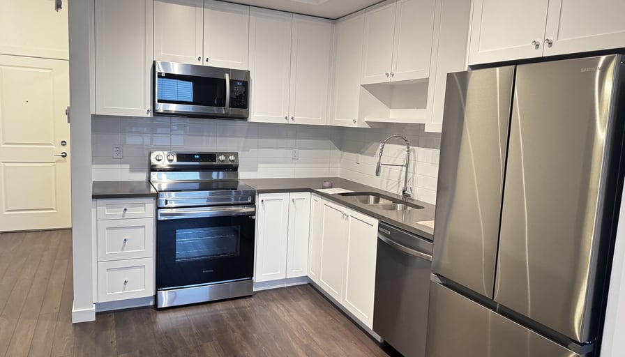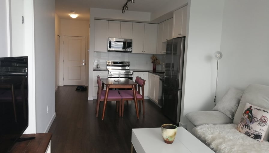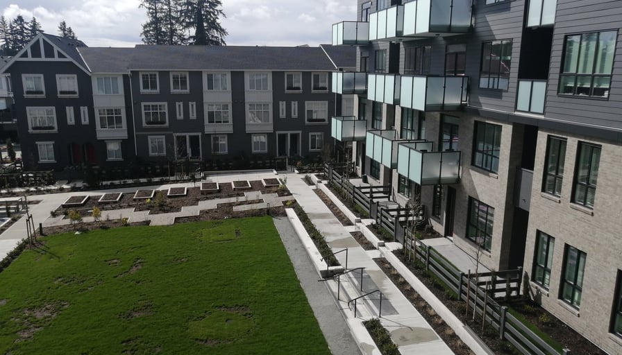 Brand new Fleetwood Village 2 condo building, south garden facing on third floor unit. Walkable to Mall, parks, banks, restaurants. EV parking and locker. Income verification and credit check reference required.
