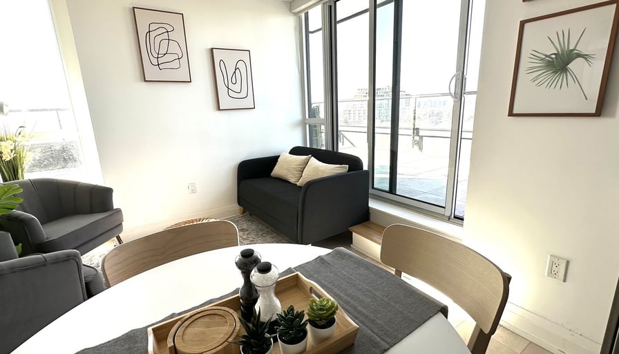 -FULLY FURNISHED SHARED CONDO-TWO BEDROOMs, TWO WASHROOMS, PLUS DEN, and HUGE TERRACE.OPTION PER WEEK: Private Room with Ensuite FULL Washroom: $500 PER WEEK Private Room, own washroom outside the room: $450 PER WEEK OPTION PER MONTH:Private Room with Ensuite FULL Washroom: $1700 PER MONTHPrivate Room, own full washroom outside the room: $1600 PER MONTH - Rental FEE includes all inclusive. (Internet, water and electricity), access to fully equipped GYM (spinning room, yoga/dance room, boxing room). And access to a co-working space and a billiards room. Beautiful, bright and spacious 2 bedroom plus den in the heart of Downsview Park. This unit offers stunning views of the park, lake and surrounding greenery. The perfect place to relax, eat, work and play with room to spare in the warmer months!