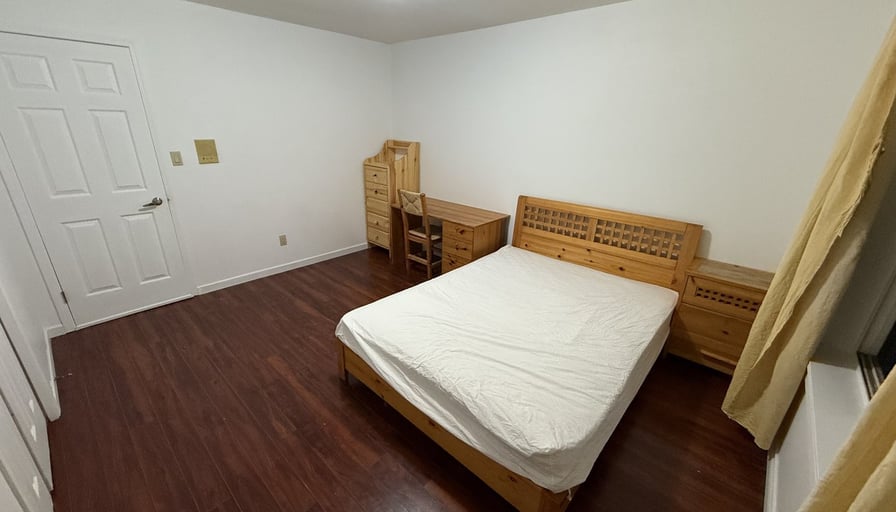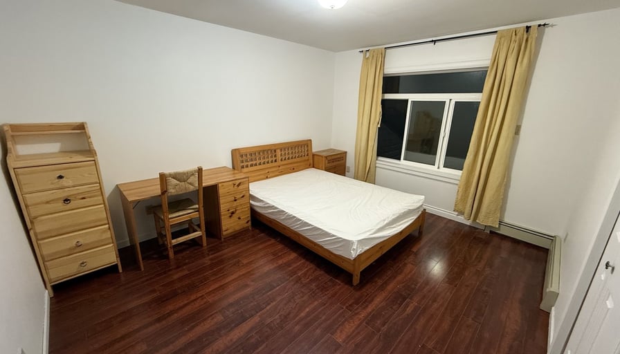 ROOM share bathroom with two others, queen size bed, desk & chair. Kitchen, washing machine & dryer shared with other tenants.PRIME Location! Located in city centre residential area, steps to Golden Village shopping centres, supermarkets, banks, restaurants, gyms, and post offices.🚗 Convenient. 1 min walk to 407/410/416 bus & convenience store. 5 min bus/ 10 min walk to Golden village shopping malls. 10 min bus to Aberdeen SKYTRain stationWe also offer other types of rooms:700/800/900/1000 Shared bathroom rooms1200/1300/1500 Suites微信: L 七七八 七九八 三七二零