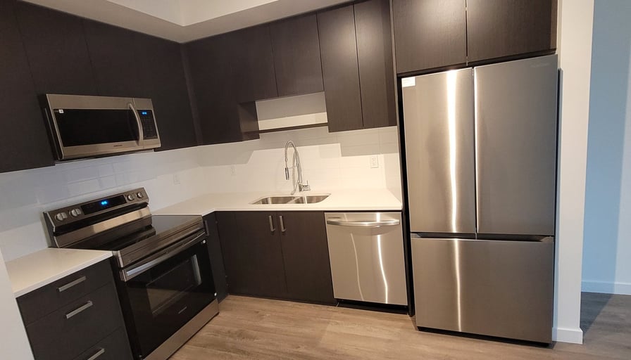 Features:Address: 15777 85th Ave, SurreyBrand new Condo facing quite street 2 bedrooms (11.5 ft x 9.5 ft, 9 ft x 7 ft), 1 bath.Open kitchen with quartz countertopsKitchen: Microwave, Stove, Fridge, DishwasherLaundry: Washer and Dryer in suiteSecured underground parking with EV charger and one storage locker (7 ft x 3.5 ft) includedFacing city park, South facing balconyAmenities: Exercise Centre, Yoga Studio, Entertainment Lounge, Children Playroom, Beautiful Courtyard with outdoor sitting areas.Excellent location close to Fleetwood Village shopping centerLease:One year fixedLandlord reference, credit checks requiredProof of income and employment verification is requiredTenant insurance is requiredCredit and reference checks are required.No pets, smoking, subletting, marijuana