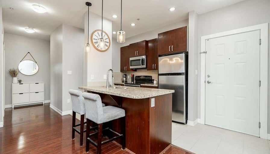 This 2 bedroom 2 bathroom unit is centrally located and steps away from Surrey Central sky train station, Holland park, SFU, KPU, library, T&T, and so much more! The unit features granite counter tops, stainless steel appliances, hardwood flooring, built in storage space, walk-in closet and laundry room with front loading washer and dryer. Rent includes strata fees (covering garbage, water, etc.) - BC hydro not included. Unit is not furnished. Please respond to the listing with the following information:-Number of people to occupy space and their full names;-Occupations of each party; -Preferred move-in date; and-Reason for moving. References, income verification and security deposit will be required. No pets, smoking or airbnbs allowed.
