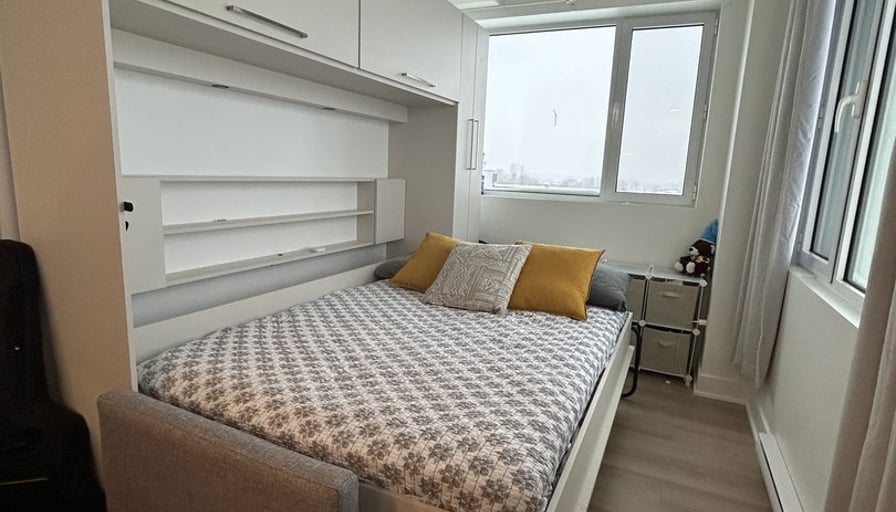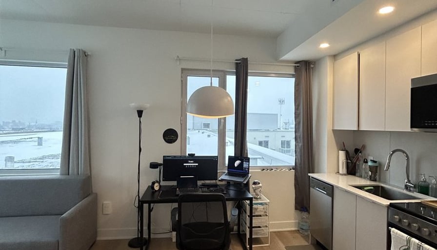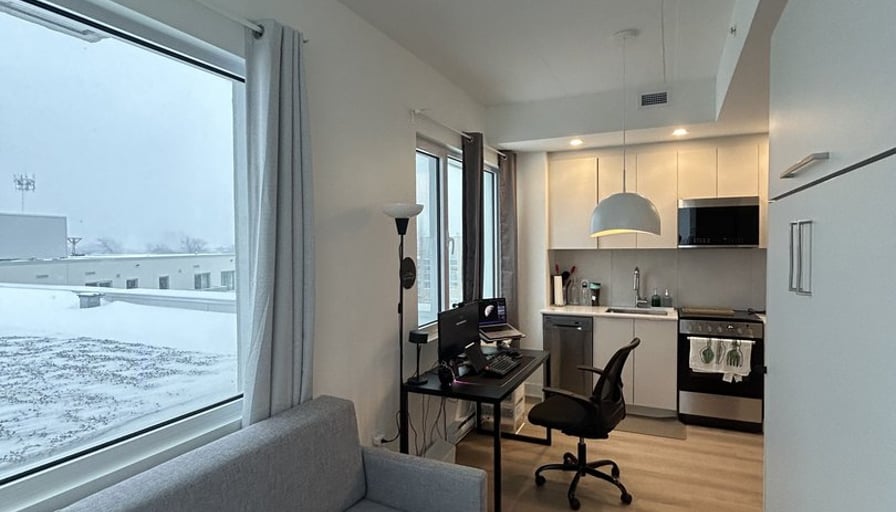 Studio for rent | Studio à louerNew building constructed in 2025 — all includedLease: Until June 30, 2027Inclusions:AppliancesElectricityHot waterHeating & Air conditioningWiFiLighting fixturesMurphy bedCommon Areas:Rooftop terrace with BBQUrban chalet / loungeCoworking spaceGymNearby:Maxi grocery store on the ground floorShops, cafés, restaurantsPie-IX and Viau metro stations–––––––––––––––––––––––––Nouvel immeuble construit en 2025 — tout inclusBail : Jusqu’au 30 juin 2027Inclusions :ÉlectroménagersÉlectricitéEau chaudeChauffage & climatisationWiFiLuminairesLit escamotableEspaces communs :Terrasse sur le toit avec BBQChalet urbain / loungeEspace de coworkingGymÀ proximité :Épicerie Maxi au rez-de-chausséeCommerces, cafés, restaurantsMétro Pie-IX et Viau