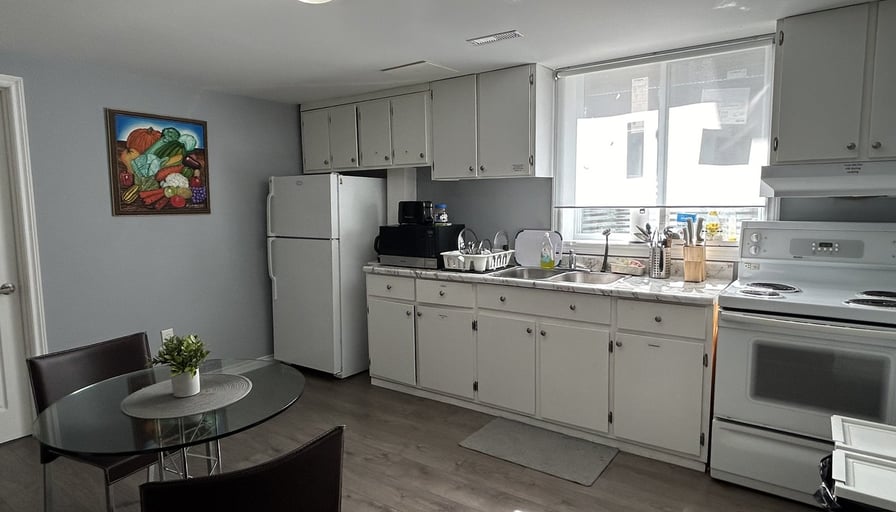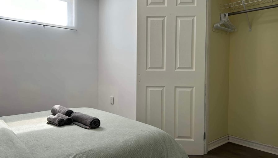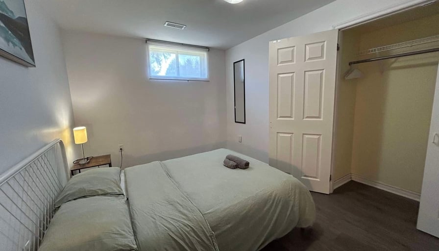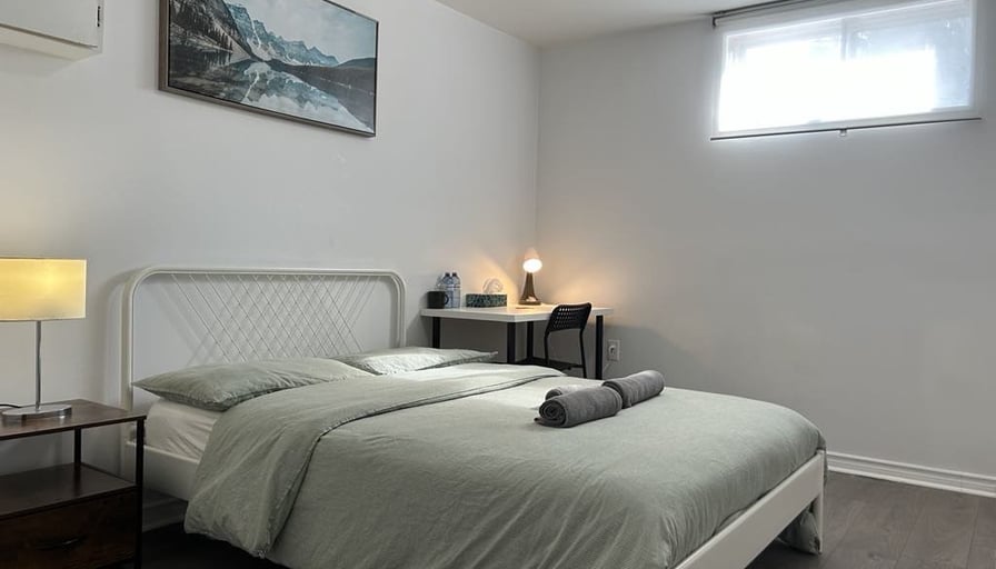 SPACIOUS Private BEDROOM in the Legal BASEMENT in Applewood area - Fully IKEA Furnished Double bed; high-speed WIFI internet; closet/wardrobe; hairdryer, working desk and chairs; his room is shared bathroom with another person only.Shared KITCHEN - Shared with other guests - Equipped with microwave, countertop toaster-oven, toaster, kettle, and various cookware, dining wares, dining table; fridge- 15 minutes to Pearson Airport by car.- 2 minutes walk to bus stops, directly connecting to City of Toronto or Square One.Convenient for students to go to Sheridan College, Canadore, Lambton College, etc. - 3 minutes WALK to local restaurants, coffee shops, groceries stores.- Secure and convenient for new comers, working professionals and travelers.SINGLE OCCUPANT ONLY