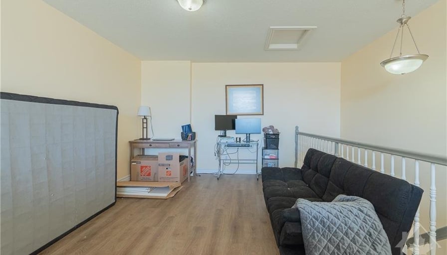 Available for rent: loft in a 2-bedroom, 2.5-bathroom apartment. The room features a spacious living area, high ceilings, large windows, and a main floor with a modern kitchen with stainless steel appliances. The apartment includes in-unit laundry and access to building amenities. The loft does not include a private bathroom and will share the bathrooms with the current occupants. Ideal for individuals looking for a shared living arrangement. Currently 2 male tenants