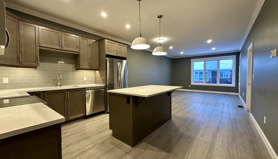 Semi-detached house (built in 2022) - 2 beds 2 full baths. Walk-in closet in the master bedroom. Open concept kitchen, dining and living room area with stainless steel appliances. Brand new appliances including fridge, stove, dishwasher, microwave, washer and dryer purchased in 2022. Luxury vinyl plank flooring throughout the unit. Window shades and blinds are included. Rear balcony for outdoor seating and cooking. Semifinished basement for extra storage, potential workspace or at home gym. One car garage with remote opener, two extra parking spots outside the garage.Highly sought after neighbourhood in the North end of Brockville - clean, friendly and very safe community. Close to all amenities.Available Feb 1, 2026 or sooner. First and last required.