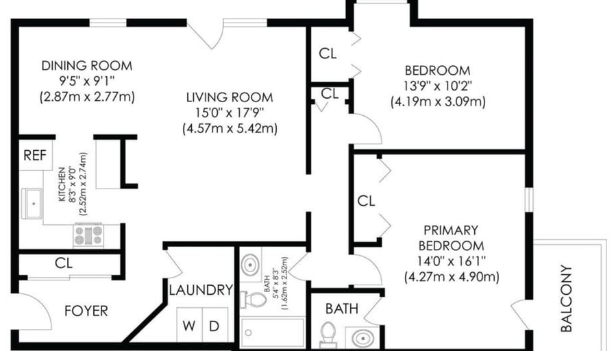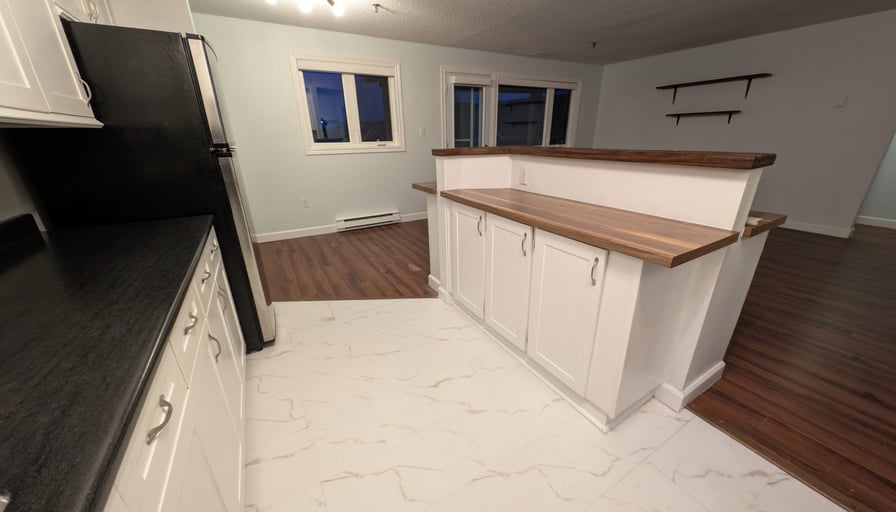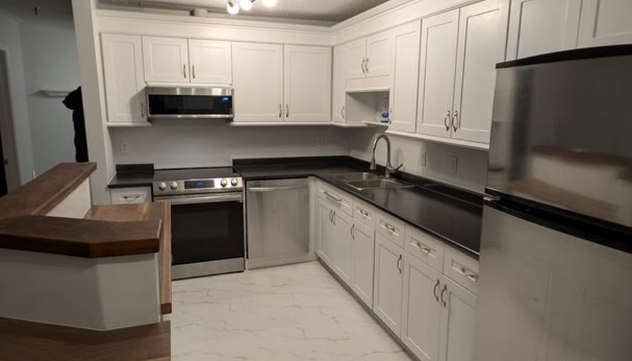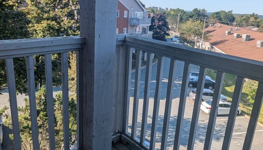 Top floor, corner unit in a quiet building. 2 Bedrooms large enough for king beds.Ensuite half bath and ensuite balcony. 1.5 bathrooms. In-suite laundry. Stainless steel kitchenFreshly painted.Cats and dogs allowed. Proof on income required. Landlords are a nice local couple, not a corporation.