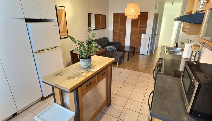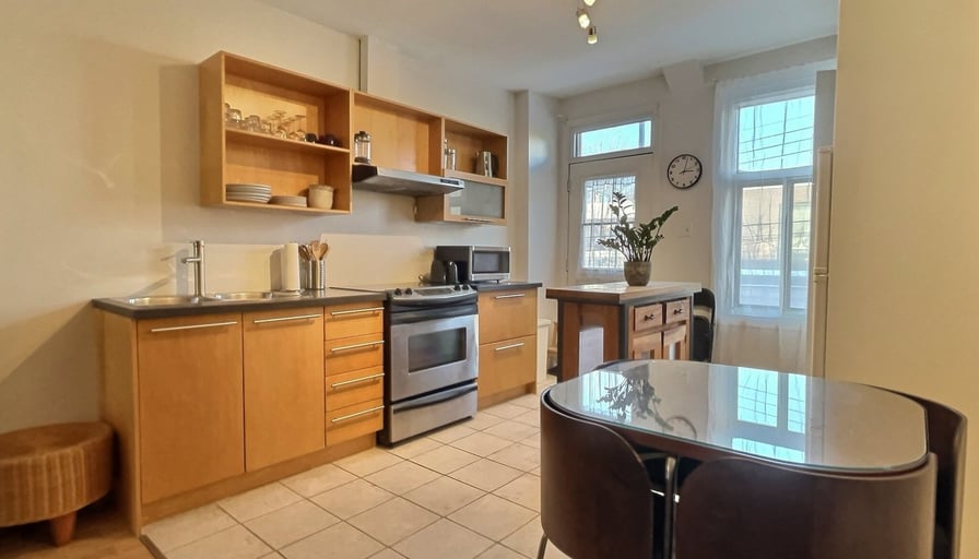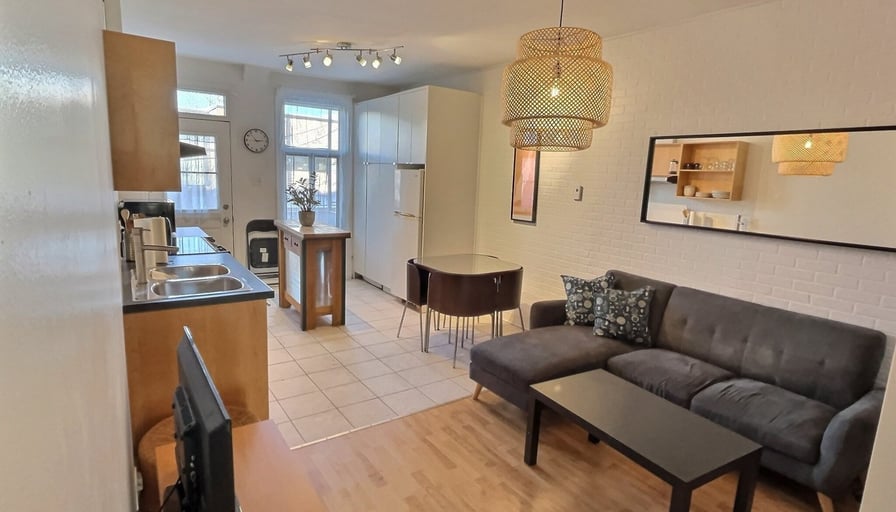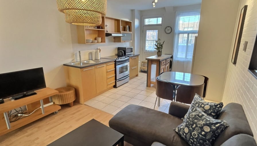MEUBLÉ, TOUT ÉQUIPÉ, CHARGES INCLUSESSuperbe 3 ½, au coeur de Villeray libre 1er Décembre, tout comprisAppartement lumineux et calme situé au deuxième étage d’un duplex, cet appartement est entièrement meublé et prêt à être habité, il comprend;- Électro (four, frigo, laveuse/sécheuse, micro-ondes, grille-pain, cafetière)- Meubles (tables, lit, divan, îlot cuisine, etc.)- Vaisselle- Télévision - Internet haute vitesse- Électricité / eau chaude (possible de laisser à la charge du locataire pour un rabais de 100$/mois)Appartement non-fumeur et sans animaux (Petits animaux, à discuter)Il comprend une chambre à coucher fermée, une salle de bain avec un puit de lumière, une grande pièce double comprenant le salon et la cuisine et une galerie donnant sur une petite ruelle verdoyante. Très confortable pour accueillir de 1 à 2 personnes. Il se situe à 3 minutes de la station de métro Jarry dans une rue très calme où il est facile de stationner. À proximité se trouvent également de nombreux commerces accessibles à pied (SAQ, IGA, SQDC, pharmacie, restaurants, café, boulangerie, fruiterie, etc.).Situation:-À 3 minutes à pied de la station de métro Jarry-À 5 minutes du Parc Jarry et du Parc Villeray-À 20 minutes en transport public des universités UQAM, UDM.-À 2 minutes de l’autoroute métropolitaine, accès direct aux grands axes routiers-Accès à plusieurs pistes cyclables