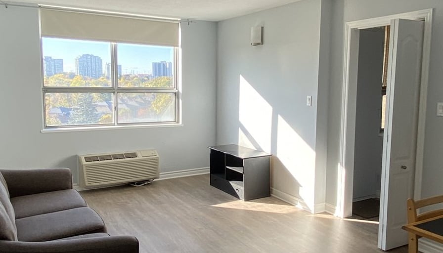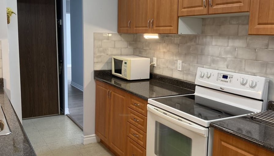 Newly renovated, bright, and spacious 2 bdr+den condo in North York. 982 sqft. 1.5 bath. In-unit washer & dryer. Balcony facing park and Humber river. Underground garage parking included. TTC stop in front of building.