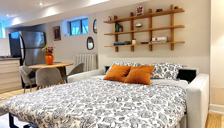 Wake up in one of Toronto’s most charming neighbourhoods and enjoy the perfect mix of city convenience and cozy comfort. Our fully furnished private 1-bedroom apartment is ideal for couples, small families, or business travellers looking for a flexible month-to-month stay.🏠 The Space- Sleeps up to 4 (1 double bed + 1 queen pull-out with gel mattress)- Large TV with Netflix- Fully equipped kitchen – fridge, dishwasher, oven, cookware, and essentials- Nespresso + milk frother + Moka pot for espresso lovers- Private bathroom with shower- In-unit washer & dryer- Separate private entrance- Towels and linens included- All utilities and high-speed Wi-Fi included🌳 Neighbourhood Highlights- Located in High Park North, steps from cafés, bakeries, and boutiques.- Walk to High Park, the Junction, or Roncesvalles Village – three of Toronto’s most beloved neighbourhoods filled with restaurants, shops, and trails.- Close to UP Express, TTC, and GO Train for quick access downtown or to the airport.Rental Rates & Terms- $750 per week (all-inclusive)- $2,800 per month (all-inclusive, discounted rate for stays 30 days+)- Month-to-month flexibility - ask us about your timeline, we can potentially work with you as we have different bookings.- No smoking / no parties- Parking available via City of Toronto temporary street-permit program- Flexibility and anytime from January 25th - May 15th- Summer timeframe (beyond May 15th) might be possible for a slightly higher rate (depends on your situation and needs)Perfect for: Relocating professionals, visiting families, or anyone needing a quiet, turnkey home in one of Toronto’s most desirable areas.Message us with your desired dates and a brief intro about yourself, what brings you to the city and we can schedule a virtual viewing.