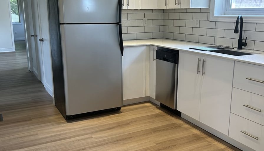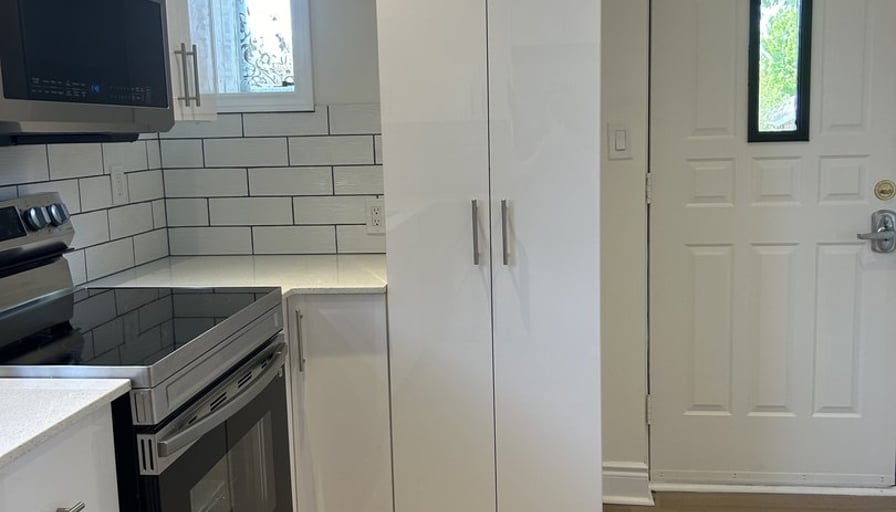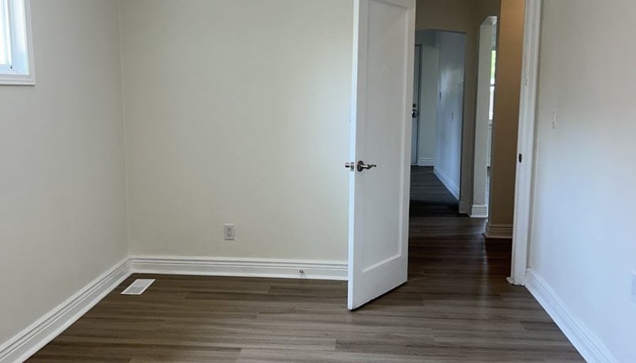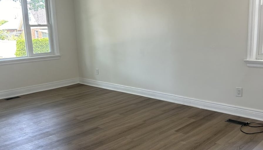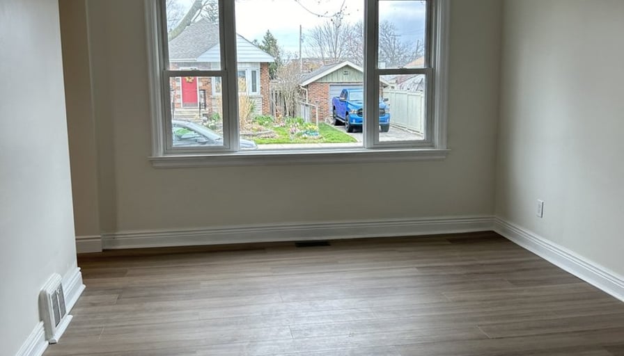 2+ bonus room apartment on the main floor of a triplex house in a quiet, safe neighbourhood. Completely renovated house-new kitchen, bathroom, flooring, neutral paint throughout and new central air. 2 bedrooms are at the back of the house and then a HUGE bonus room beyond the bedrooms. This can be used for a primary bedroom with room for a sitting area and a desk. This room has a has fireplace and many bright windows. Alternatively, it can be a family room, workout and hobby room. Large living room with an expansive window and a side window. The kitchen has a quartz counter top, all new cupboards, white subway tile backsplash, brand new stove, brand new microwave with a vent. The sink is centred under a bright kitchen window. Neutral LVP flooring throughout that is easy to maintain. Laundry hook-ups in bedroom closet. Lots of storage closets. Security code private entrance. Solid brick house with a lovely front porch and shared use of backyard. Pet friendly. Near Inch Park, Princess Bingo, shopping, restaurants, 2 km from Mohawk College and 2 km from Limeridge Mall. Perfect house and quiet neighbourhood for professionals, a young couple, and seniors. All inclusive - hydro, gas, water, parking for 2 cars in driveway.