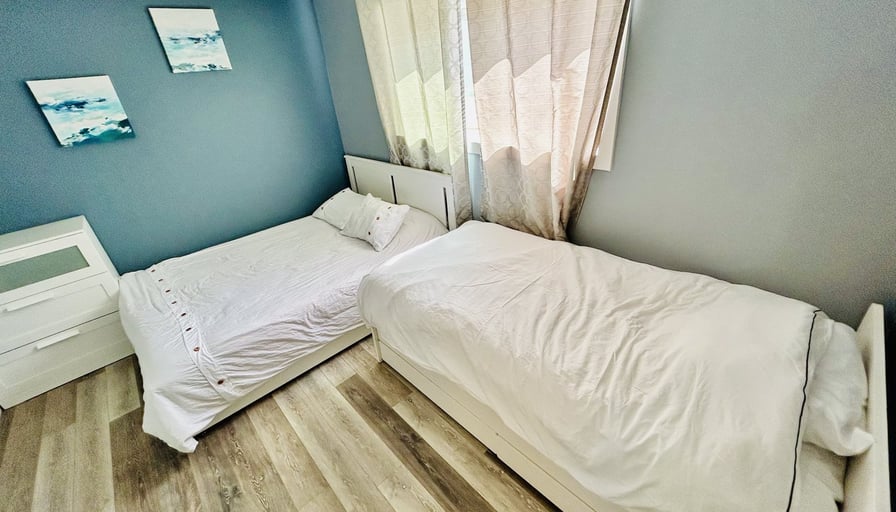 PET FRIENDLY (one pet)FULLY FURNISHED - 2 BEDROOMSAVAILABLE: Feb 1 (Lease End in April or May)Enjoy the BIG East facing windows that let in all the SUN. The couch and beds are comfortable, and the kitchen has everything you will need, including a microwave, blender, toaster, air fryer and a coffee maker. After playing at the beach, you can easily pop back home because it’s only a 2-minute walk. Unit Includes: - Master Bedroom with comfortable Queen- “Bunk Room” with one Queen and TWO Twin beds- Living Room with Queen Pull-out bed- Full bathroom with tub- 65“ Smart TV- Fully Equipped Kitchen - Assigned parking spot included - Free street parking pass available- Big windows- Office work desk- Laundry in building- Booster seat, playpen & kid’s dishes- Board games & Puzzles- Bocce Ball- Snorkels / flippers- Beach toys & Beach towels**Minimum lease length is 1 Month****Utilities not included (High Speed Wifi & All Utilities cost $200/month flat rate) We are friendly and easy going, please let us know if we can do anything to help suit your needs!