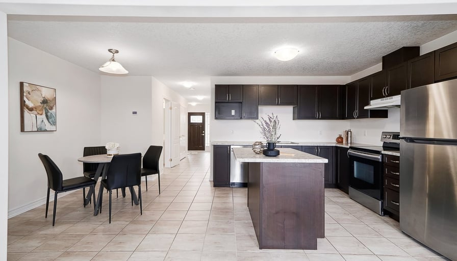 Welcome to this modern 3-bedroom, 3-bathroom townhouse in the heart of Collingwood. Built just 5 years ago, this bright and inviting home offers a functional layout with thoughtful upgrades throughout. The main floor features a spacious living room with brand new laminate flooring (2025) and a Juliette balcony that fills the space with natural light. The contemporary kitchen includes stainless steel appliances, a center island, and plenty of room for family meals or entertaining. Upstairs, the primary bedroom boasts a double closet and a 3-piece ensuite bathroom, while the second bedroom offers a double closet and the third a walk-in, providing excellent storage for the whole family. Located in a desirable neighborhood close to schools, parks, trails,and downtown Collingwood, this home provides easy access to skiing, beaches, golf, and all the amenities the area has to offer!