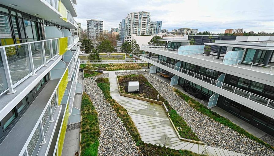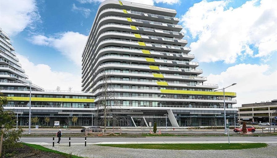 Rarely available SOUTH-facing 1 bed in Richmond’s iconic Cascade City. This bright, open layout offers large windows, a spacious balcony overlooking the private rooftop garden, A/C, Miele appliances, engineered flooring & modern finishes. Surrounded by shops, restaurants & services. Walk to Olympic Oval, Minoru Park, Richmond Hospital, Richmond Centre & Canada Line. YVR is a short drive away. Amenities: 3,000 sf double-height fitness centre, guest suite, club lounge & 25,000 sf podium-level outdoor space.Suite is Unfurnished