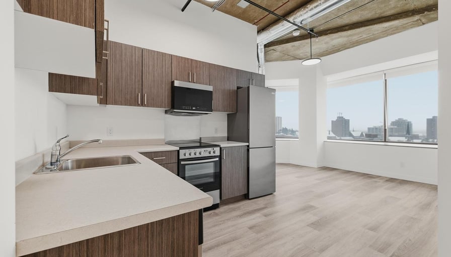 30 Duke Street West• One-bedroom suites with various layouts available & 11’ loft ceilings • Starting from $1,650/month + utilities• Stainless steel appliances including refrigerator, full oven, microwave, dishwasher• In-suite washer & dryer (Duke Street Tower units)• Parking options: – Underground secured parking: $150/month – Surface parking: $50/month• Limited-time offer: 1 month of free rent on a 13-month lease