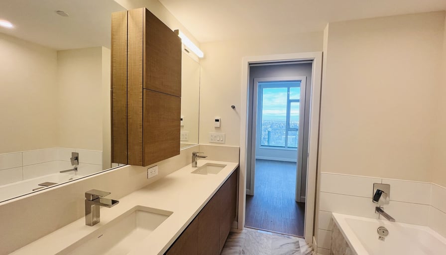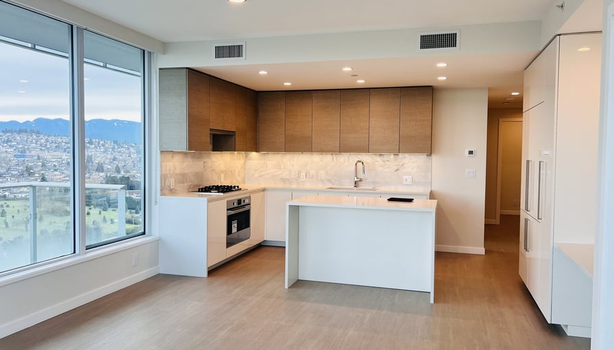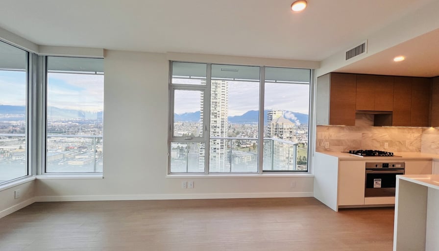Luxury 2-Bedroom + Den Corner Unit at Gilmore PlaceProperty Overview: • Location: Gilmore Place Master-Planned Community • Floor: 28th Floor • Interior Size: Approx. 995 sq. ft. • Outdoor Balcony Deck: Approx. 250 sq. ft. • Layout: Corner suite facing West and North, offering expansive mountain and city views • Condition: UnfurnishedKey Features: • Bedrooms: 2 + Den (Master bedroom features walk-in closet, ensuite bathroom, and deck access) • Bathrooms: 2 (1 ensuite in the master bedroom) • Outdoor Space: Wraparound deck (250 sq. ft.) accessible from the living room and master bedroom • Windows: Floor-to-ceiling windows and patio doors • Flooring: Finished hardwood throughout • Laundry: In-suite washer and dryer • Climate Control: Central heating and cooling (A/C) • Appliances: Integrated Fulgor premium Italian appliances • Storage: 1 secured storage locker • Parking: 1 underground secured parking spaceAmenities: • Indoor: state-of-the-art fitness facility (75,000 sq. ft. combined) - Indoor pool and hydrotherapy pools (hot tub, steam room, sauna) - Basketball court - Bowling lanes, golf simulator - Movie theatre, party room, and games room/lounge • Outdoor: - Outdoor pool, hot tub - BBQ areas - Children’s play area - Outdoor fire pit and loungeConvenient Location: • Steps from Gilmore SkyTrain Station • Walking distance to retail and dining options, including a 55,000 sq. ft. T&T Supermarket (opening Summer 2025), Cactus Club, White Spot, Tim Hortons, and StarbucksLease Details: • Term: Minimum 1-year lease • Policy: Firm no-smoking policy • No pets allowedApplication Requirements: • Provide a brief email about yourself/family, employment, and household income • References, credit check, and proof of income/employment required • Only serious inquiries will be replied toIf interested, please contact us at 604-716-6661 with the requested details. Don’t miss this opportunity to live in a premium unit at Gilmore Place!